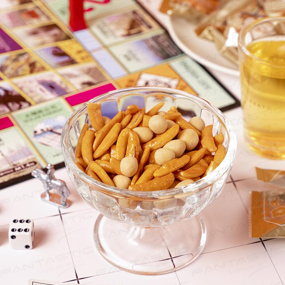 一袋綜合帶有濃厚烘烤醬油香氣的堅脆柿種與裹上鬆脆外皮香氣十足的優良花生豆