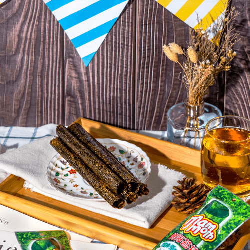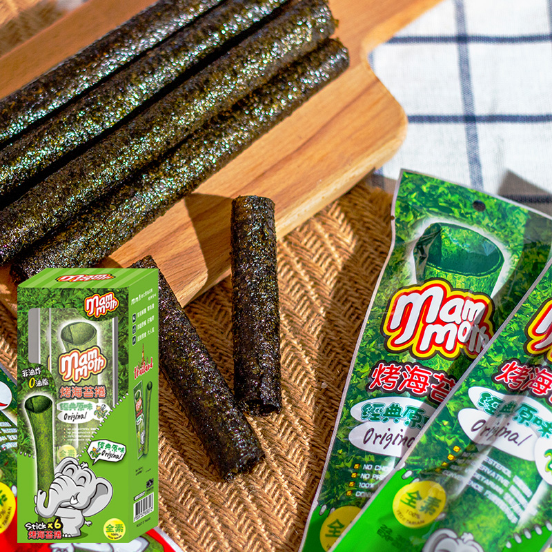 以傳統泰式烘烤法手工製成,並將爽脆海苔捲成適合入口的大小,口感厚實酥脆,品嘗美味不沾手。