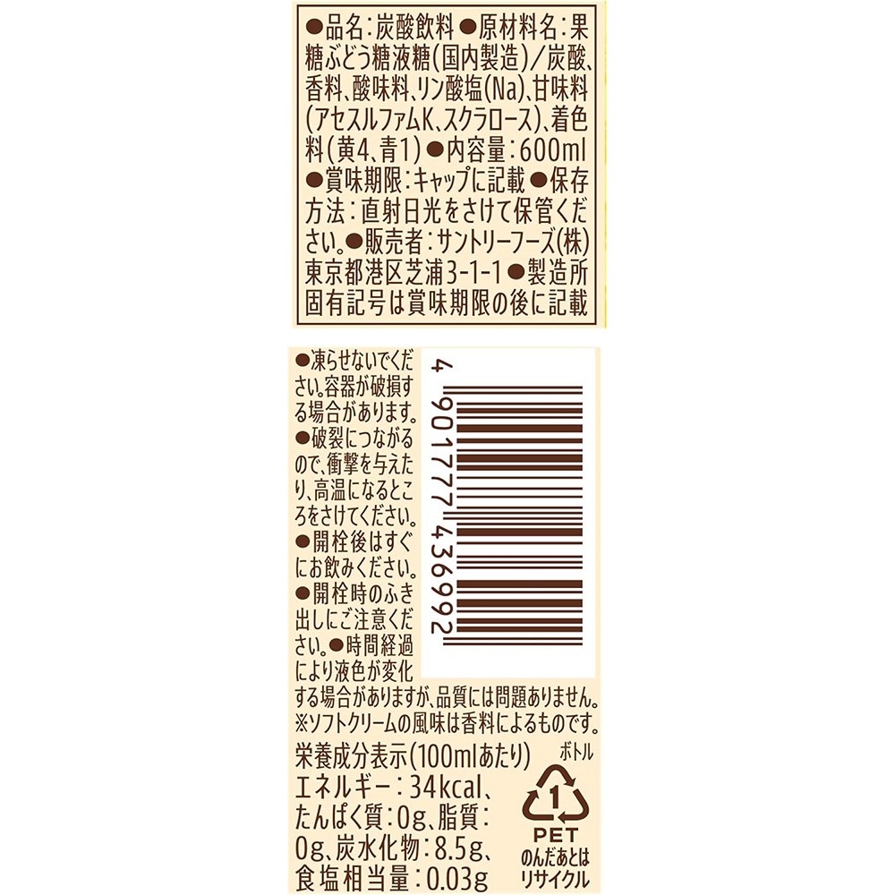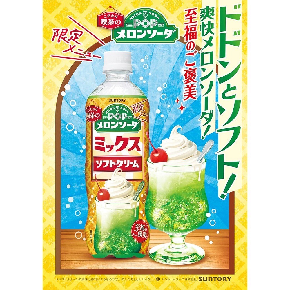 融合了香濃牛奶與香草風味,再帶有淡淡的甜筒餅乾香氣,呈現出宛如霜淇淋般的美味。將爽快氣泡的哈密瓜蘇打與濃郁霜淇淋結合,打造出清涼又濃厚的口感。600ml 大容量設計,暢快易飲。