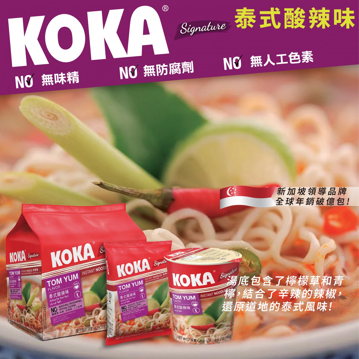 KOKA可口 經典新加坡-泰式酸辣湯麵(袋裝)