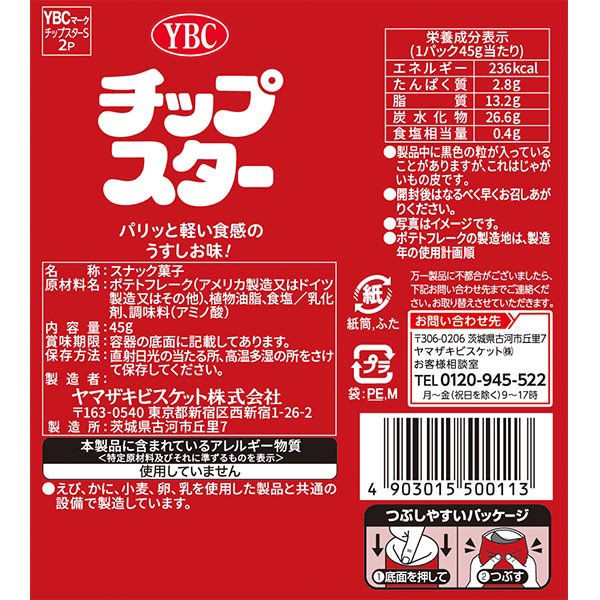 山崎餅乾的「Chip Star」自1976年作為國內首款成型薯片上市以來,已經超過40年,深受大家喜愛,是國民零食。使用了薯片片狀原料,並採用獨特製法製作的Chip Star,擁有輕盈的口感和薯片風味的完美平衡。圓筒型包裝方便攜帶,無論何時何地都能享受酥脆的新鮮薯片。