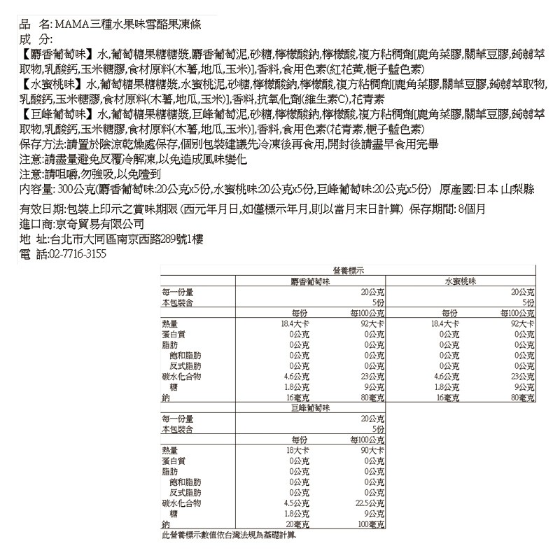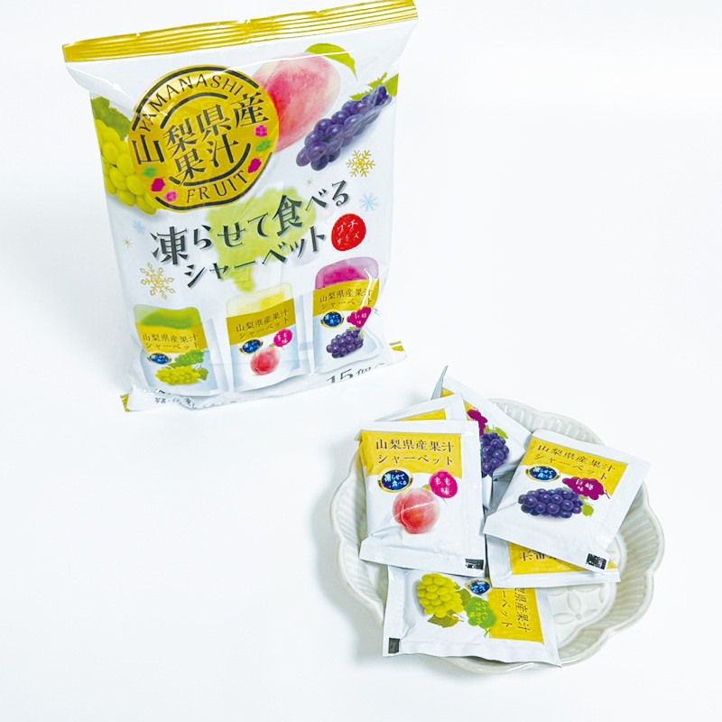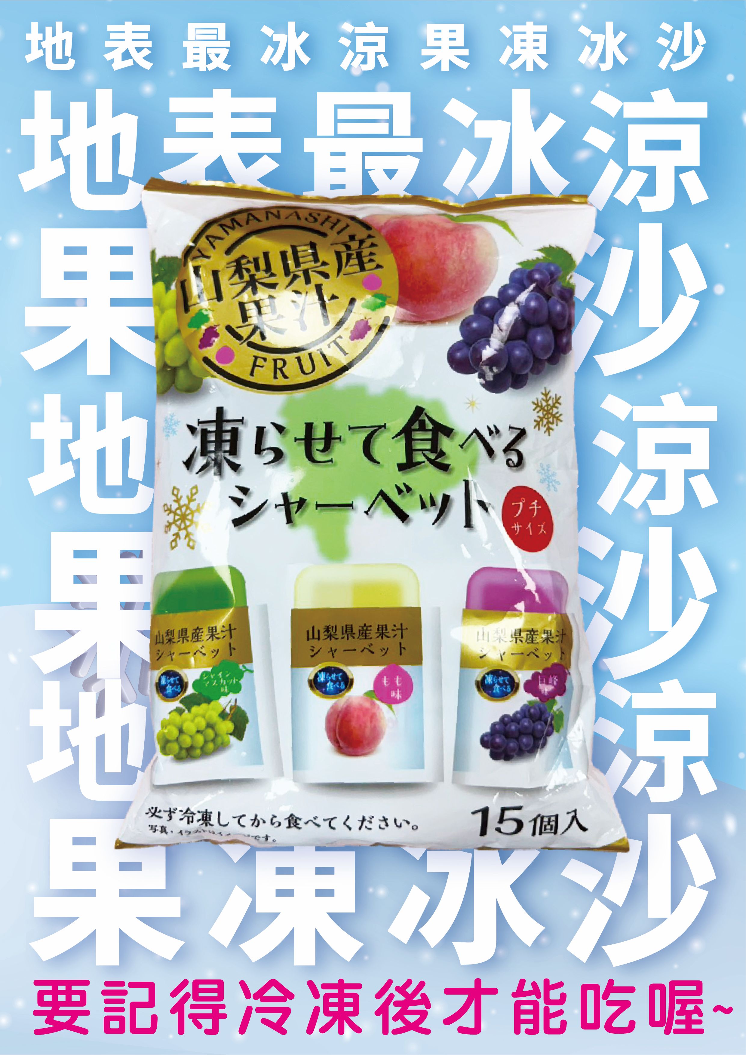 融合3種日本山梨縣產濃郁果汁,打造清爽不膩的夏季冰品✨凍成冰沙後口感綿密滑順,每一口都沁涼入心,消暑又療癒!裡面為個別小包裝,除了不沾手外,非常適合給孩童當小點心,不用怕小孩一次吃太多!